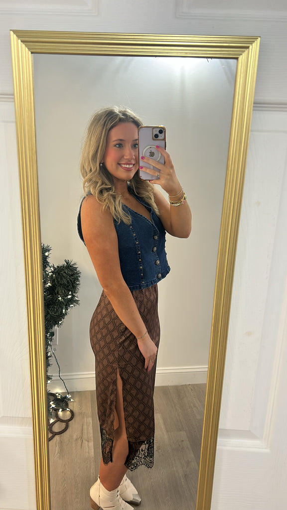 literally obsessed with this material and the lace bottom is perfecttttt!! the side slit gives it just the right amount of sass, and paired with boots? Chef’s kiss.